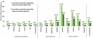 Figure 14 : Proportion of older people in Yorkshire and Humber from ethnic minorities (excluding white minorities) by age groups 65+ and 50-64, 2019