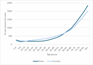 Figure 2 : NHS general and acute care age-cost curve, 2013/14, England